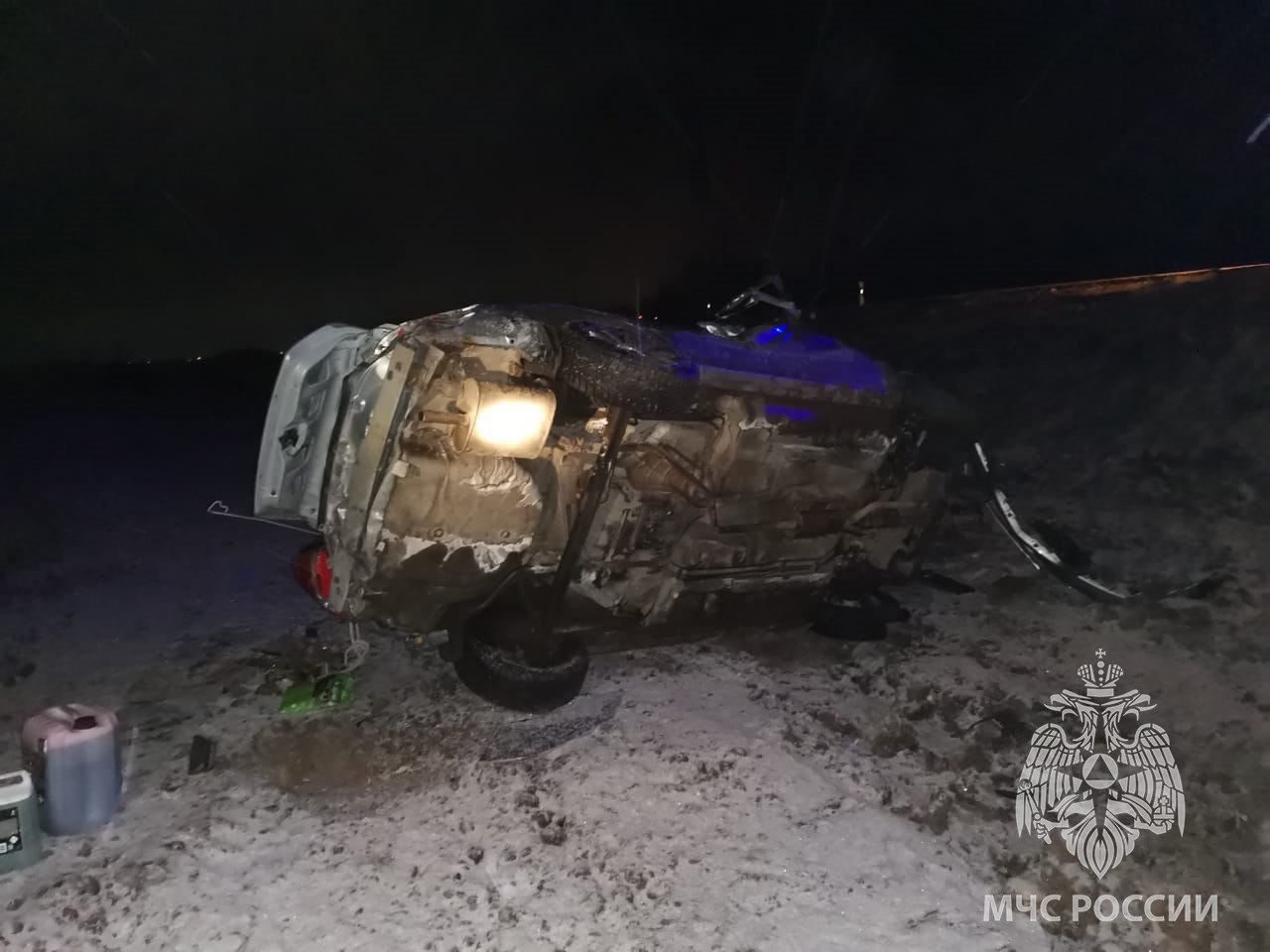 22-летний водитель "Ниссана Альмера" не справился с управлением и слетел в левый по ходу движения кювет, где иномарка опрокинулась. На место ДТП привлекались сотрудники МЧС - боевой расчет 39 ПСЧ - 3 человека и 1 единица техники.