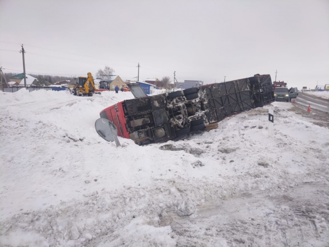К счастью, обошлось без погибших, и даже никто не пострадал: пассажиры были осмотрены медиками. После люди были размещены в районном доме культуры, но сообщается, что они уже продолжили дальнейшее движение на другом автобусе.