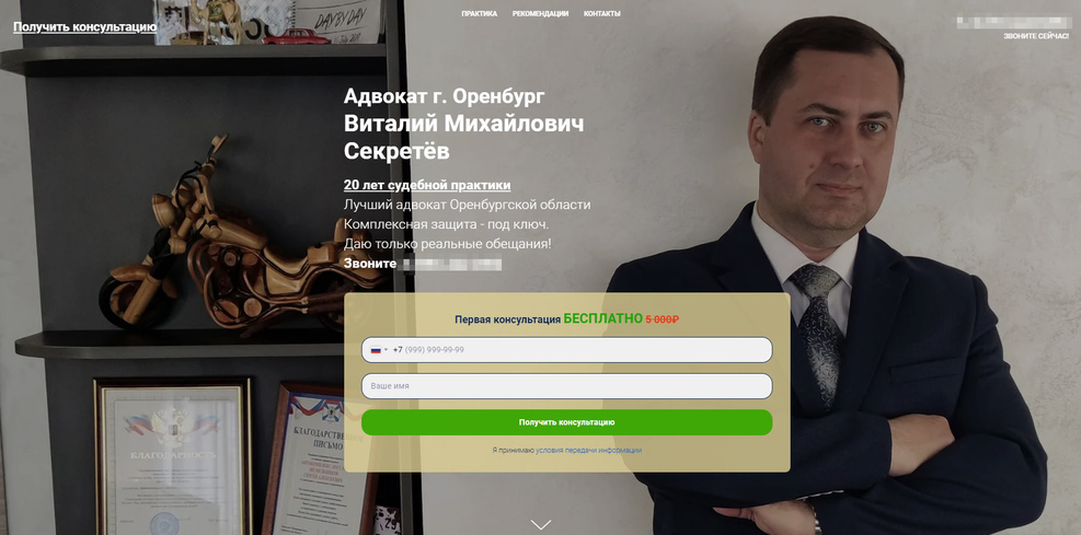В век технического прогресса трудно найти человека, будь он предпринимателем, политиком, актером, художником, портным, трейдером, который для продвижения своей деятельности не создал бы сайт. Многие адвокаты, в том числе оренбургские, также пошли по этому пути. На сайте одного местного адвоката при открытии его страницы в глаза сразу бросаются данные о том, что он - превосходный защитник. Буквально черным по белому написано: «Лучший адвокат Оренбургской области. Комплексная защита - под ключ. Даю только реальные обещания!» И это еще не все. Потенциальных клиентов сражают наповал и цифрами: 95% выигранных дел, свыше 1 400 успешных юридических кейсов! Причем, несмотря на то, что защитник - мужчина, указано: «Работаю одна и лично отвечаю за каждое действие».