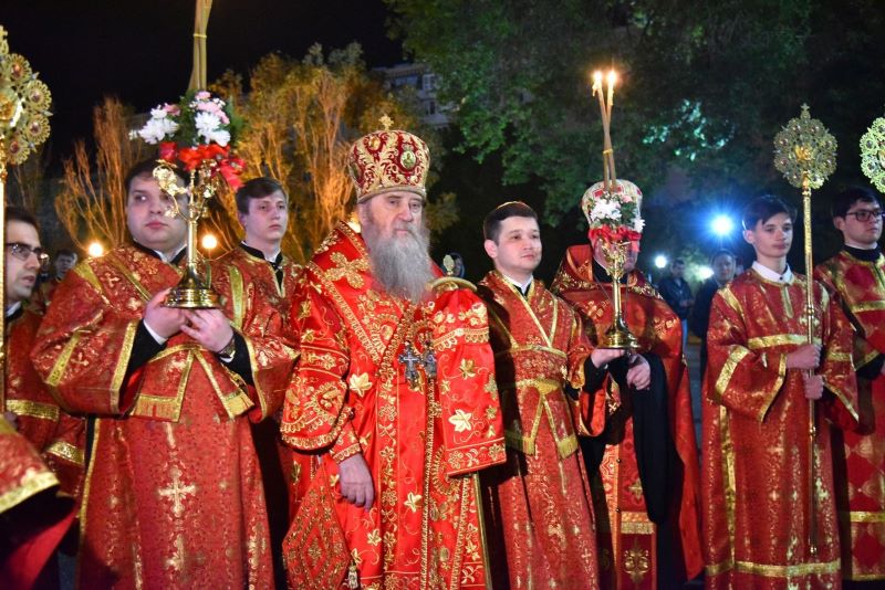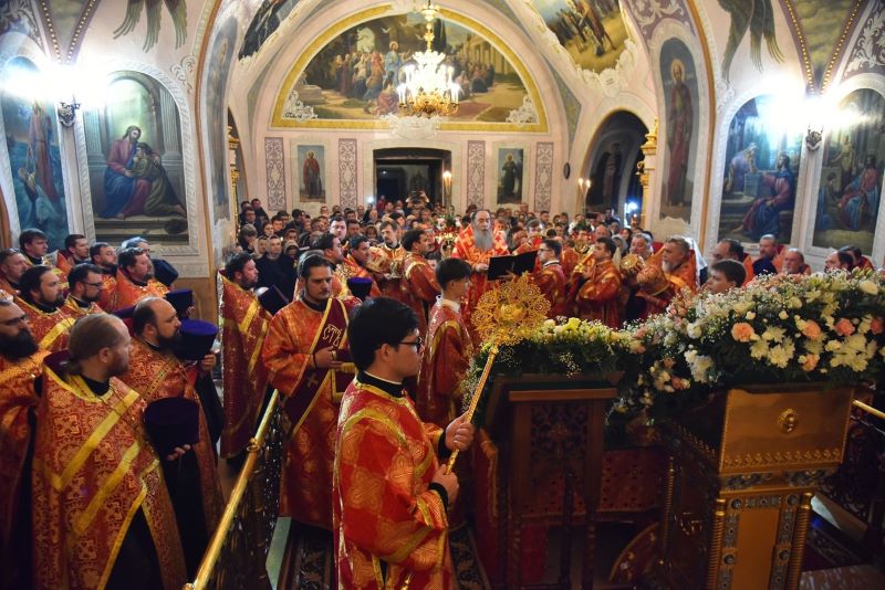 Мощи Георгия Победоносца разместили на приготовленном месте в центре храма. Началось молебное пение святому великомученику. После митрополит Вениамин приложился к святым мощам и, поднявшись на амвон, обратился к прихожанам. Несмотря на ночной час, храм был полон православных верующих. Для молящихся он был открыт всю ночь.