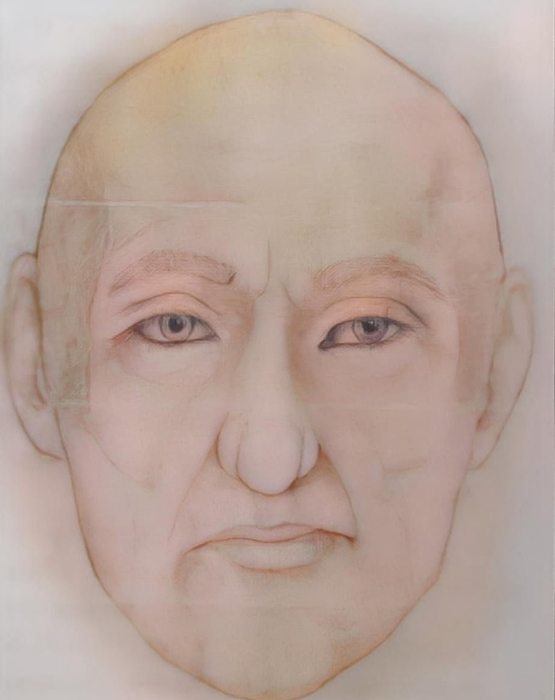 Его личность пока не установлена, но в ходе судебно-медицинского исследования был установлен примерный возраст погибшего - 61,7 лет (+-8,7 лет). Также эксперты составили фотоаппликацию черепа.