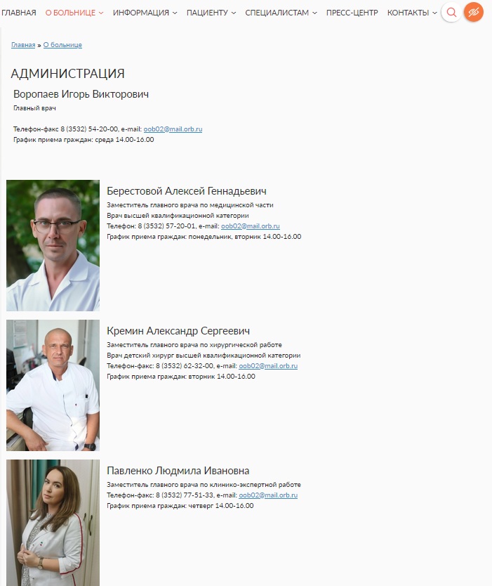 Работы у нового главврача много, и об ее ответственности говорить не приходится. Должно быть, именно поэтому один за другим у Воропаева появляются замы. На сегодняшний день, судя по данным официального сайта больницы, их пока трое: