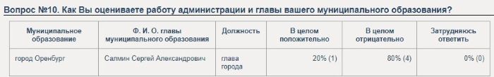Каковы же в настоящее время результаты данного опроса, пока рядовые оренбуржцы пребывают в неведении, что у них есть шанс поставить своему мэру "неуд" за работу?