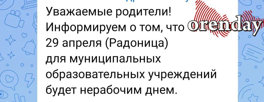 Orenday ранее рассказывал, что Евгений Солнцев, врио губернатора Оренбургской области, предложил местным организациям сделать Радоницу выходным днем, сохранив при этом сотрудникам заработную плату, чтобы люди могли без проблем посетить погосты.