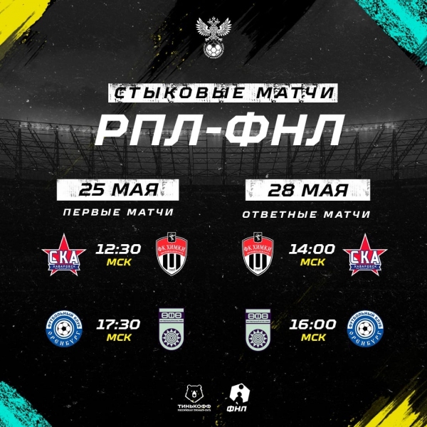 Во втором стыковом матче за выход в Премьер-Лигу поборятся "Химки" и "СКА-Хабаровск".