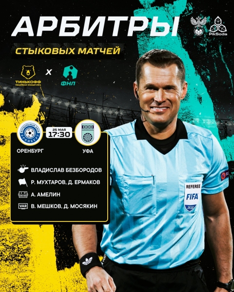 Последний раз 49-летний Владислав Безбородов судил матчи "Оренбурга" в 2019 году. Тогда всё закончилось поражениями "газовиков" в матчах с "Ростовом" - 1:2 и "Тамбовом" - 0:3. "Уфу" он судил трижды в 2021-2022 году: у соседей в этих матчах нет ни одной победы - один матч с "Нижним Новгородом" они свели вничью, дважды проиграли - "Динамо" и "Крыльям Советов". В этих трех играх Безбородов неизменно показывал как минимум одну красную карточку, причем, в матче с "Динамо" он показал прямое удаление нападающему "Уфы" Вячеславу Кротову уже на шестой минуте встречи.