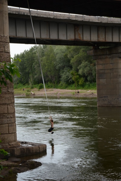 Под мостом регулярно срывают запрещающие знаки, и на смену срезанных самодельных тарзанок привязывают новые. Кроме того, юные экстремали прыгают в воду прямо с опор моста.