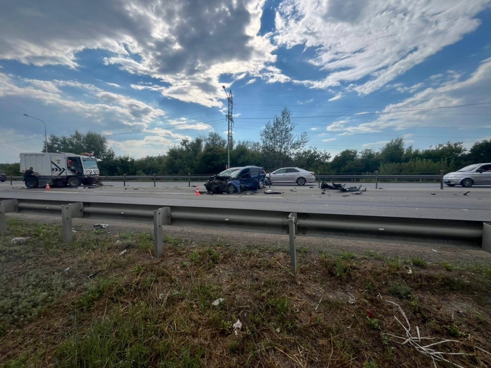 От удара легковушку отбросило сначала на подметально-уборочную машину «Дулево», а затем на тросовое ограждение. Женщина-водитель получила травмы и была доставлена в больницу.