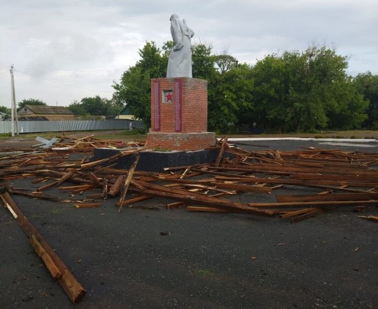 Упавшие элементы кровли также разбили три светильника в только что благоустроенном по нацпроекту парке имени Жумаханова. Частично был разрушен и забор одного из жилых домов на улице Победы. Ущерб мог быть еще больше, если бы на пути унесенной ветром крыши не встал металлический памятник советскому солдату, который и затормозил падение снесенной с двухэтажного здания кровли. Выдержав небывалый удар, памятник устоял.