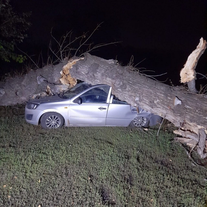 Накануне вечером в полицию поступило сообщение о происшествии, в результате которого пострадала "Лада Калина". На припаркованную машину рухнуло дерево, полностью её придавив. Транспортное средство оказалось смято, словно консервная банка.