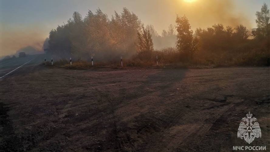 Автодорога Орск-Новоорск заполнилась едким дымом и прямо перед автолюбителями играют языки пламени. Горит сухая трава, но пока определить масштаб возгорания сложно. На месте работают пожарные из МЧС, сотрудники противопожарной службы и добровольцы. По некоторым данным, к ликвидации возгорания пришлось привлекать пожарный поезд. Предварительно, угрозы населенным пунктам нет. Всего в тушении задействован 31 человек и 14 единиц техники. К месту пожара обеспечен бесперебойный подвоз воды. Работа осложняется порывистым ветром. Информация уточняется.