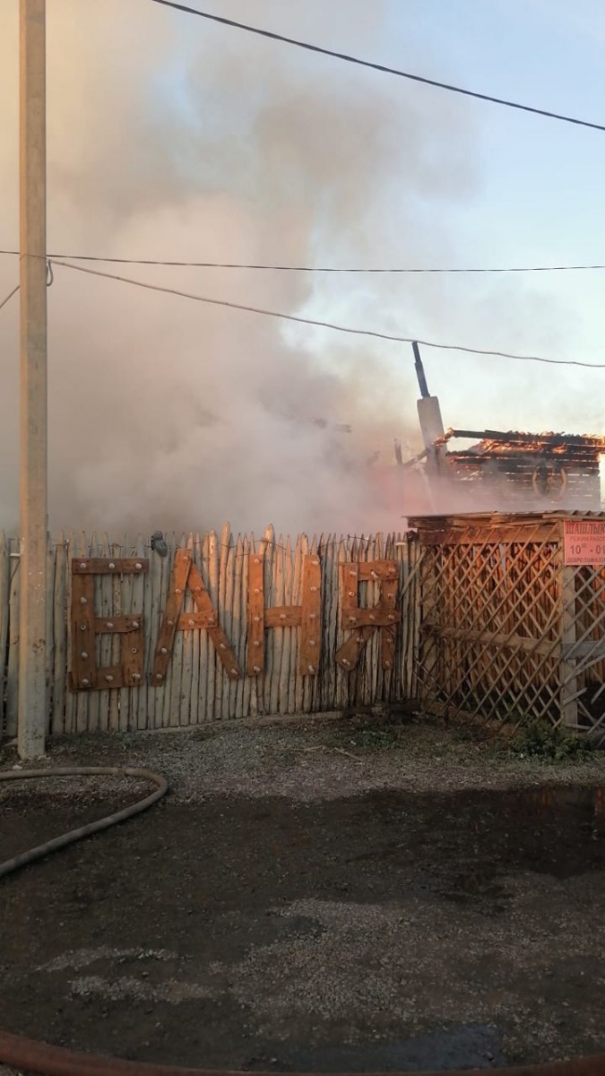 В 07:47 на пульт дежурного пожарной охраны поступило сообщение от очевидцев о возгорании бани на улице Сейфуллиной.
