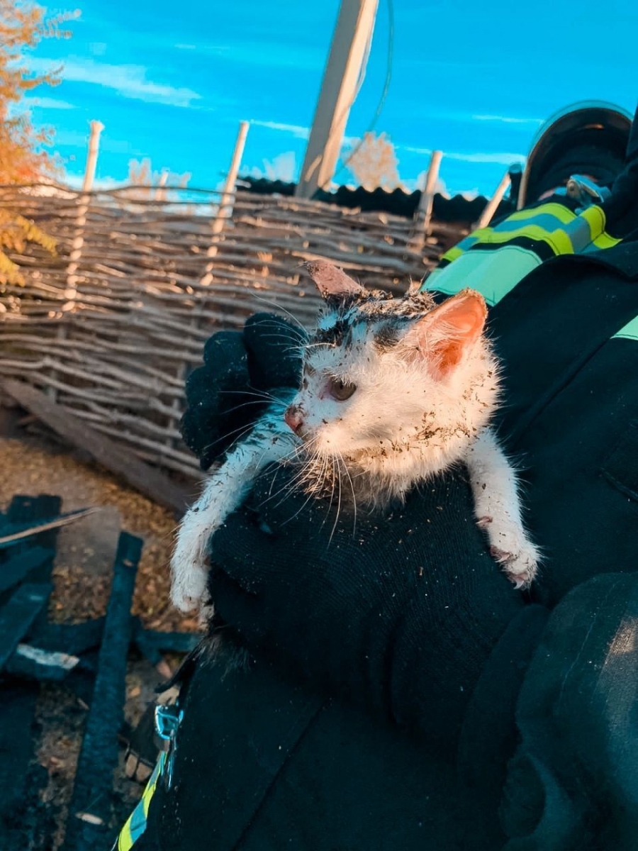 Согласно инструкции сотрудники МЧС сформировали на месте звено газодымозащитной службы для поиска возможных пострадавших. К счастью, помощь людям не понадобилась, но на этот раз в беде оказалось целое кошачье семейство, которое огонь загнал в смертельный тупик в бане. Пожарные не смогли пройти мимо трех несчастных котят и вынесли их на свежий воздух.