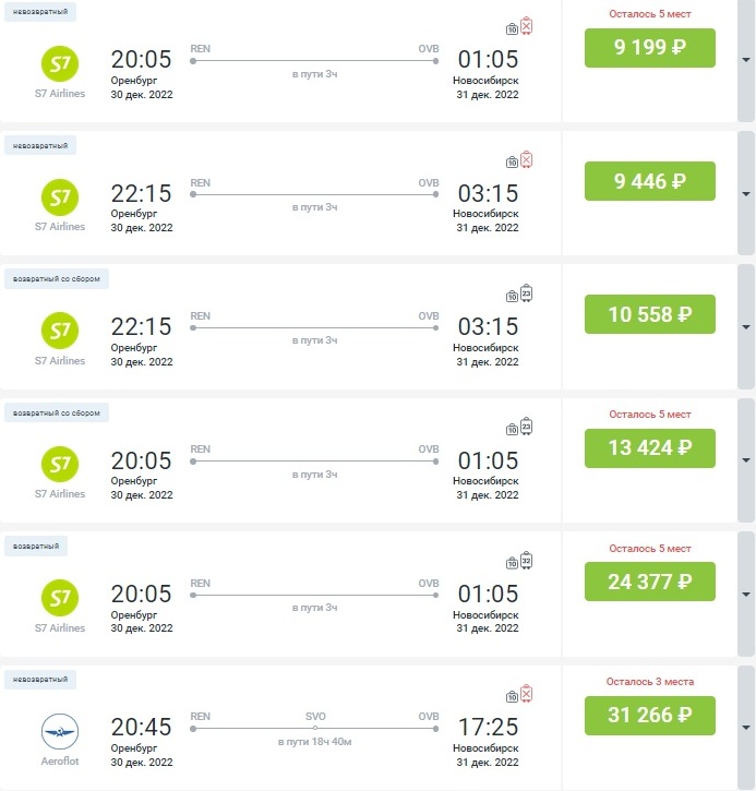 Например, цены до Москвы, а это два с половиной часа полета, в канун Нового года можно еще приобрести от 10 055 рублей. Имеются рейсы и с пересадками в Новосибирске, однако время перелета растянется до 13 часов.