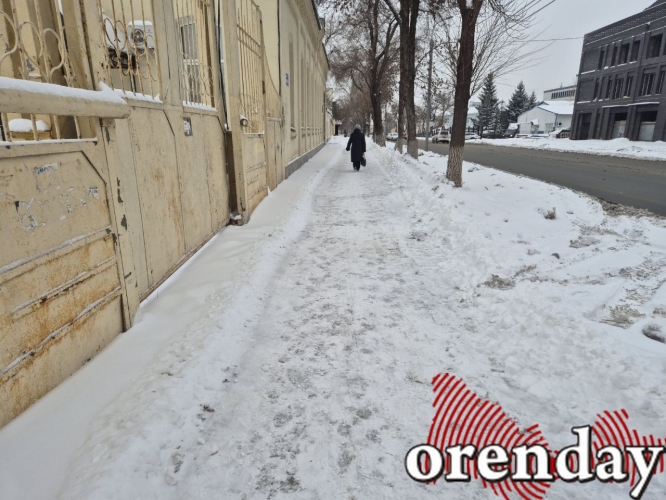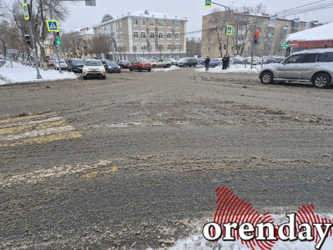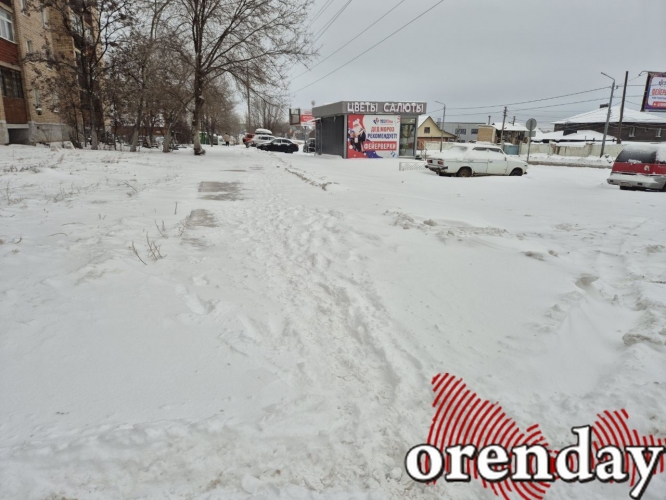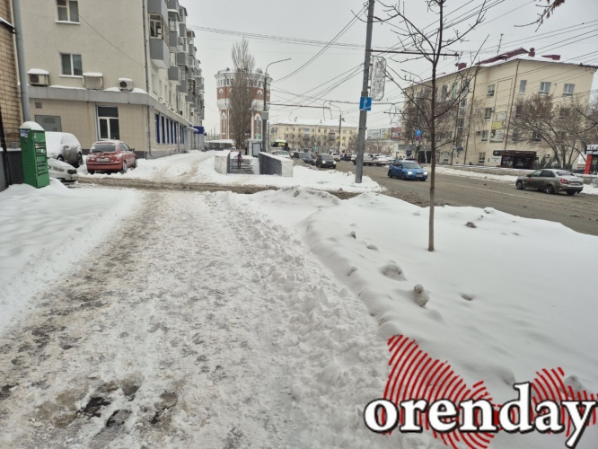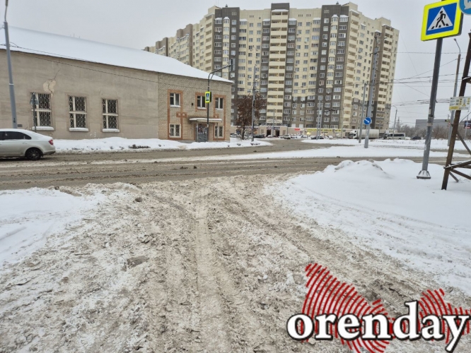 Это же касается и тротуаров. В центре Оренбурга снег, в основном, с них убирают – нерасчищенными остаются только небольшие участки. Но, как известно, тротуары в городе есть далеко не везде. Например, перейти с проспекта Победы на Аксакова можно только по непролазной каше проезда.