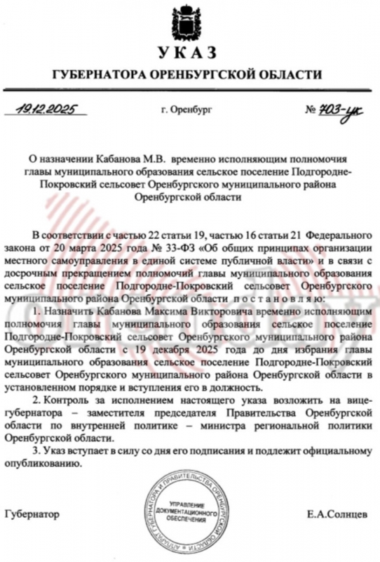 Исполнять обязанности Максим Кабанов будет до избрания нового главы Подгородней Покровки. Дату предстоящих выборов должен назначить Совет депутатов.