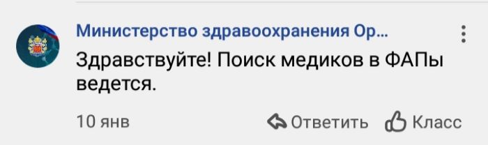 Как пояснили в Городецком сельсовете, новый специалист в ФАПе должен появиться в феврале, как только решится вопрос с финансированием. Дело в том, что новый медик несколько лет назад переехала в село из Оренбурга, ее отучили и теперь она придет на смену ушедшему на пенсию специалисту. Местные власти говорить о данном факте не стали, но в данном случае человек может претендовать на выплату по программе "Земский фельдшер", вот, собственно, ее одобрения, как уверяют местные жители, и ждут. Остается лишь поверить на слово властям и подождать до февраля.