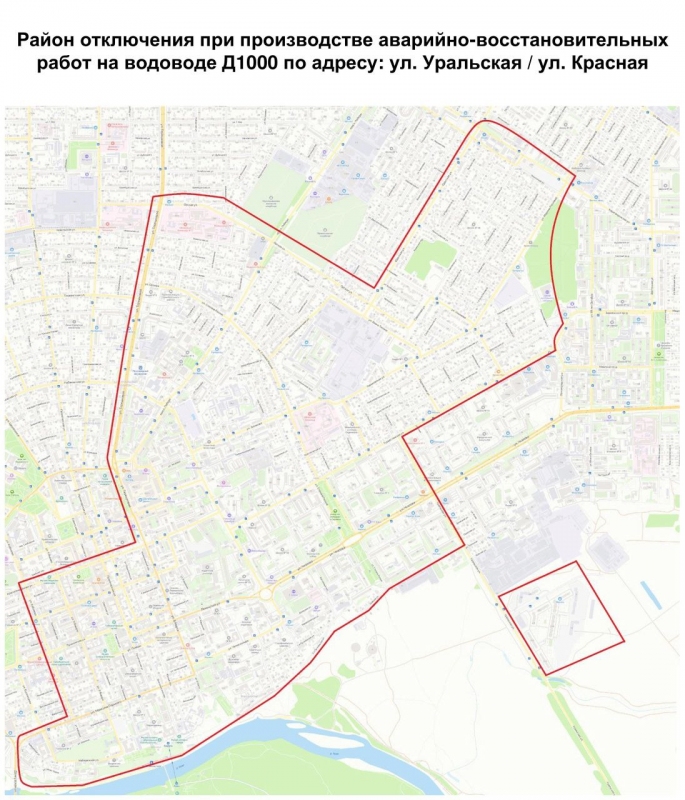 - а также в районе, ограниченном улицами: Красной - Уральской - Туркестанской - Расковой - Карагандинской - Одесской - Орской - Терешковой - 8 Марта - Краснознаменной - Кобозева - Чичерина - Челюскинцев - М. Горького - Набережной.