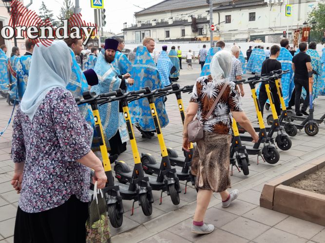 Сотрудники организаций, в том числе банков, мимо которых проходил Крестный ход, с любопытством выскакивали на крыльцо или глазели в окна, наблюдая за шествием людей с иконами и хоругвями. А вот на улице Советской никто даже не подумал на время Крестного хода убрать самокаты, массово установленные здесь для проката. И толпа верующих вынуждена была просто перешагивать через них, рискуя споткнуться и упасть, либо обходить стороной.
