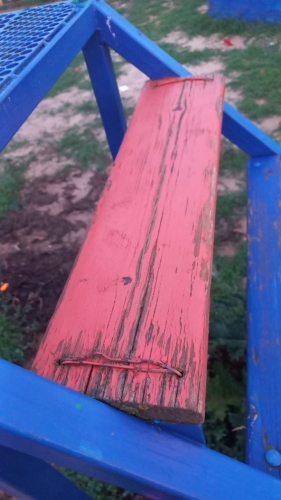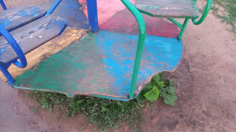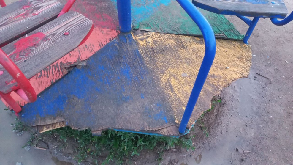 Но это полбеды. Качели, карусели, качалки начали разрушаться. Посадить занозу - секундное дело.
