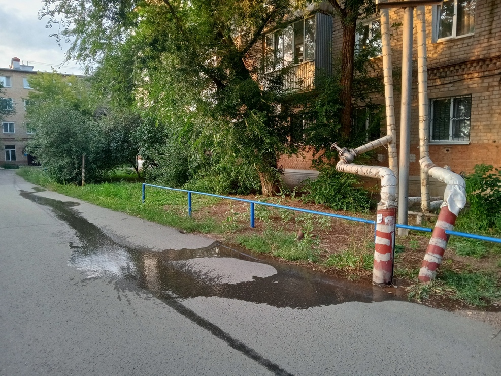 Горячая вода тоненькими струйками льется по асфальту, а также приближается к дому номер 5.