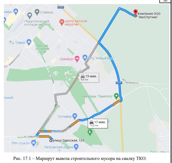 Согласно проектной документации, разработанной ООО «Научно-производственное предприятие «Промтехнология», бетонный и кирпичный бой, деревянные конструкции перегородок, окон и дверей, мебели, стальные конструкции лестниц, внутренних, наружных инженерных систем и других конструкций, а также прочий строительный мусор необходимо вывезти на свалку ТКО в Оренбурге, и даже предложен маршрут вывоза именно туда.