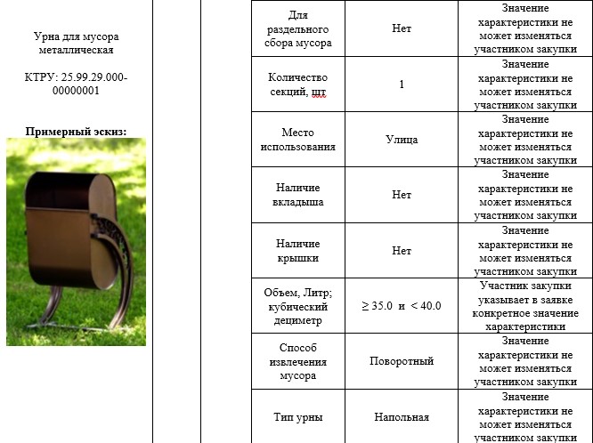 Урны должны быть металлическими и коричневого цвета с верхним расположением отверстия для мусора и непременно с поворотным способом извлечения отходов.