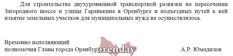 И вот, новый для Оренбурга человек, причем, в полном соответствии с получаемым прямо сейчас в столице образованием (напомним, что Альберт Юмадилов учится в «Школе мэров», среди прочего, быть искренним), сообщил Орендэй, что никакого выкупа участков под развязку на Гаранькина и в помине не было.