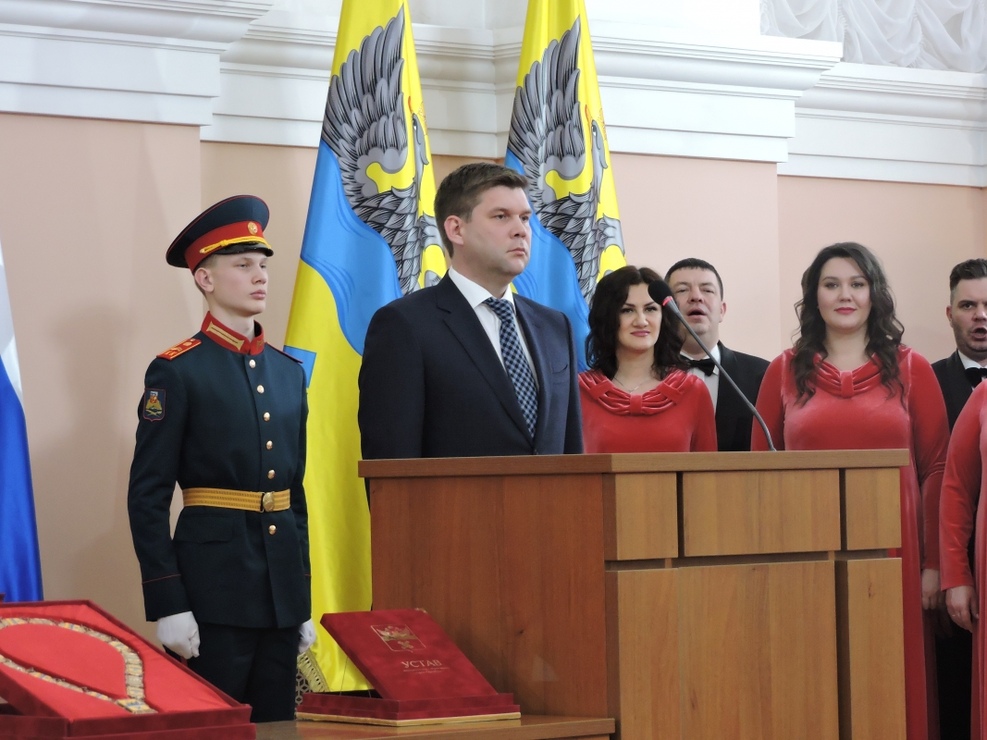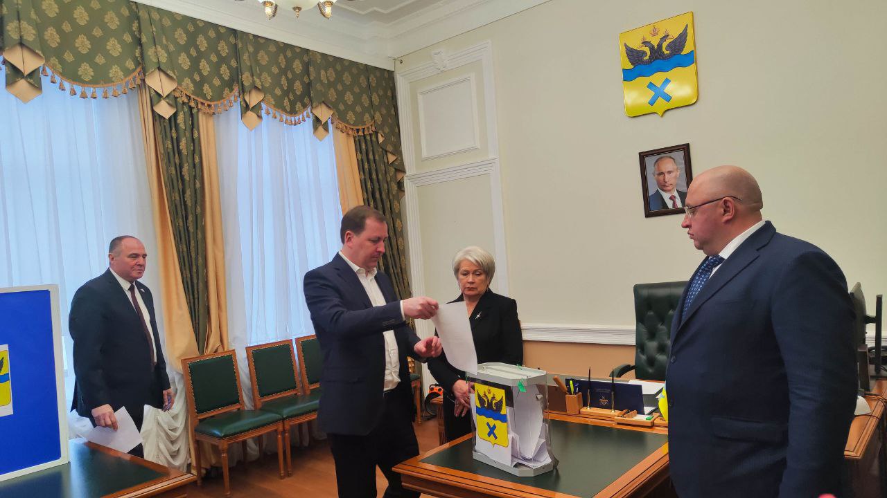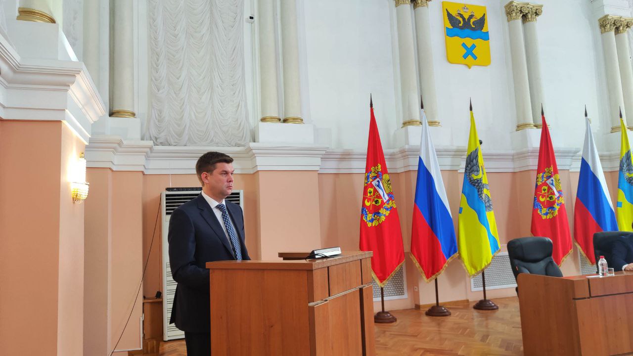 Спикер Горсовета Сергей Бабин вручил Альберту Юмадилову удостоверение главы города, а мэр произнес торжественную клятву.