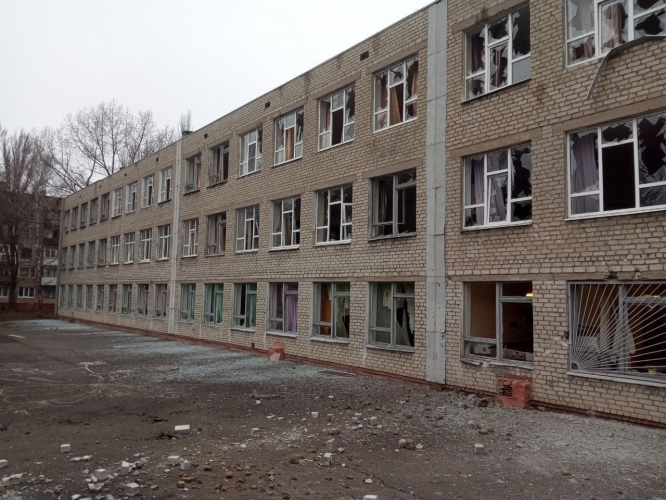 Также под обстрел украинскими силовиками в городе Ясиноватая Донецкой области попала школа-интернат. По счастливой случайности здесь никто не пострадал.