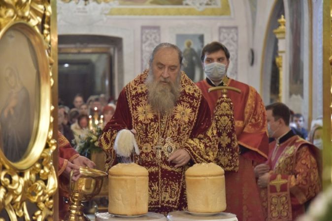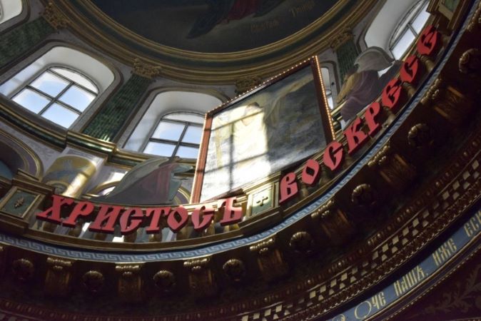 Кстати, вчера на Пасхальной Вечерне владыка Вениамин преподносил прихожанам символ праздника - красное пасхальное яйцо. Неизменно во всех храмах возносились прощения и молитва о восстановлении мира. Святое Евангелие по традиции было прочитано на разных языках: церковно-славянском, русском, латинском, греческом, английском, болгарском, татарском, казахском и французском. Митрополит также совершил чин освящения артоса - в православной церкви высокий цилиндрический хлеб, в центре которого обычно изображают Воскресение Христово, который готовится на закваске, освящается в первый день Пасхи и раздается народу в субботу.