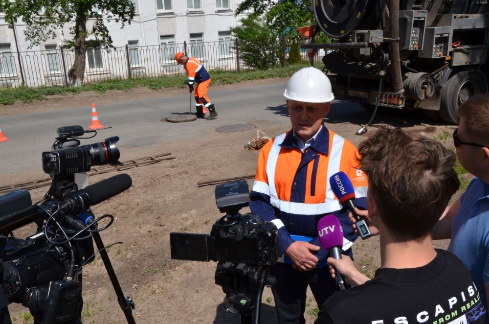 Выехавшая по заявке бригада специалистов оперативно устранила засор на канализационных сетях на ул. Кольцевой областного центра при помощи гидродинамической промывки. Этот метод предусматривает удаление различного мусора и илового осадка струей воды под высоким давлением (обычно в интервале 100-150 атмосфер). Для этих целей используется каналопромывочный автомобиль. После водной обработки внутренней полости состояние канализационного трубопровода обследовали при помощи телевизионной диагностики.
