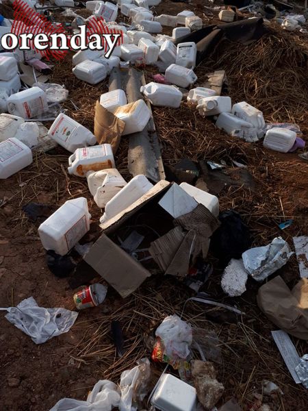 При ближайшем рассмотрении стало ясно, что это тара из под пестицидов - ядовитых веществ, используемых для уничтожения вредителей и возбудителей болезней растений, а также различных паразитов, сорняков, вредителей зерна и зернопродуктов. В части из них даже еще плещется жидкость.