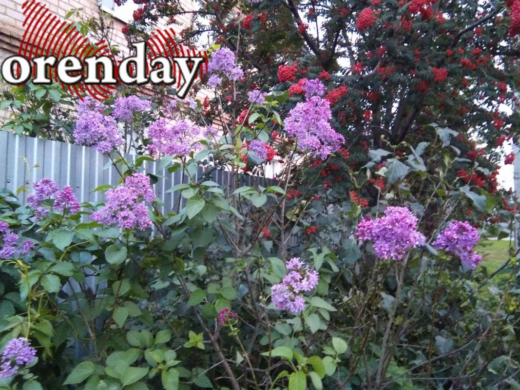 Нежная сирень и соседствующая с ней рябина, ветви которой тяжелы от огненных гроздей ягод, соревнуются – кто же из них краше?