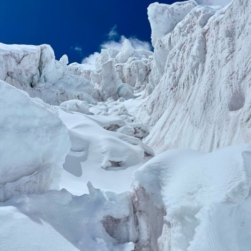 Добрались до базового лагеря. Вчера был акклиматизационный выход в лагерь № 1 на высоту 5800 метров. Наконец перестал лить дождь, и мы обрадовались хорошей погоде. Но радость была преждевременна. Если можете представить, как в каком-то страшном сне, вас поджаривают на сковороде, это про это. В какой-то момент казалось термобелье из полиэстера плавится и пристает к коже. Несмотря на постоянное нанесение сильного солнцезащитного крема, он не мог обеспечить полноценную защиту. Телефоны в рюкзаках сообщали о перегреве. Но мы дошли. Две короткие стенки, несколько трещин, которые, правда, можно перепрыгнуть, и мы в первом лагере, - делилась покорительница гор. - Лама поднялся в базовый лагерь, чтобы прочитать молитвы и попросить богов благословить нас на успешное восхождение. И хотя мы другой веры, священный трепет во время обряда, безусловно, присутствовал. После принято мазать друг друга мукой, танцевать и веселиться как следует.