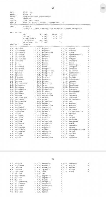 Об этом сообщается на официальной странице Совфеда. 2 сенатора от Оренбургской области - Елена Афанасьева и Андрей Шевченко также приняли участие в голосовании.