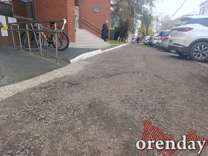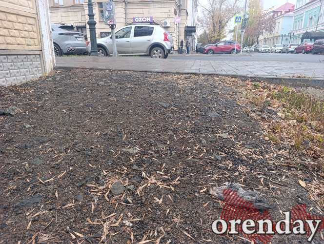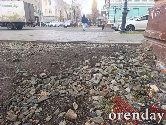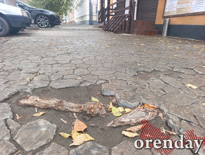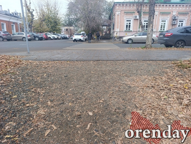 Казалось бы, такая улица уж точно заслужила обычный асфальт на тротуарах. Но, увы, не в Оренбурге. В частности, дорога студентов к миру искусства выглядит так: