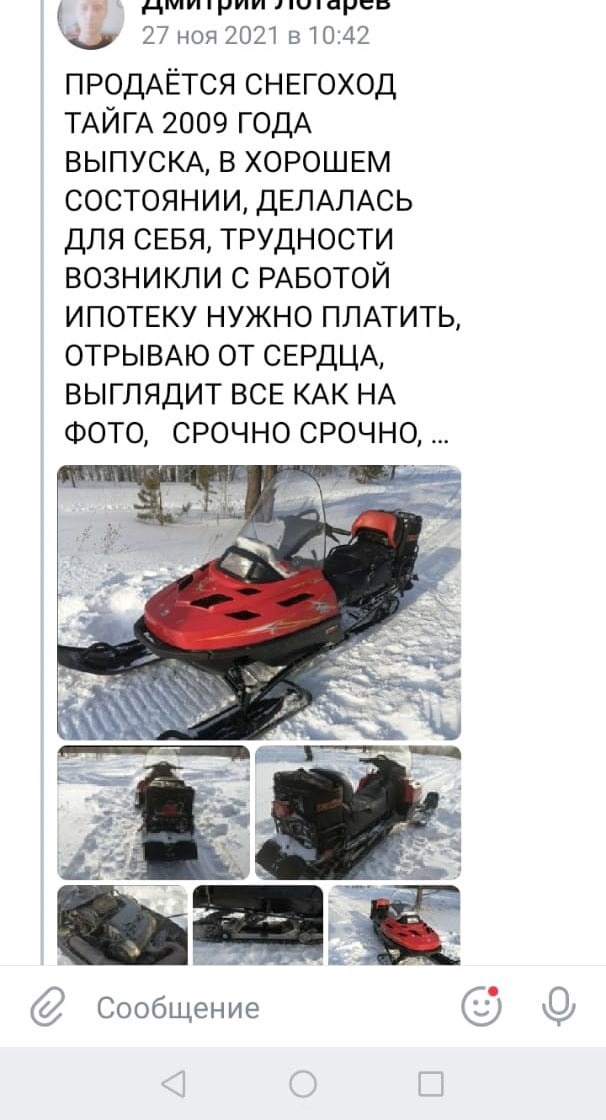 Мужчина объяснил, что вступил в переписку с неким мужчиной из Башкирии, который продавал снегоход «Тайга» 2009 года выпуска за 62 000 рублей. «Отрываю от сердца», как было указано в объявлении.