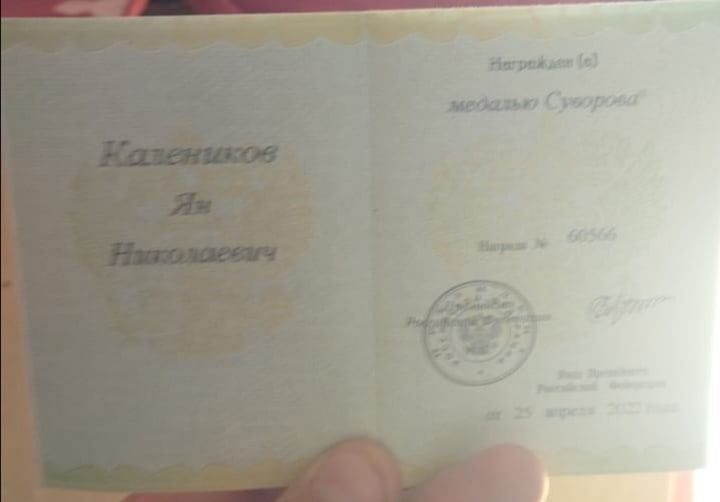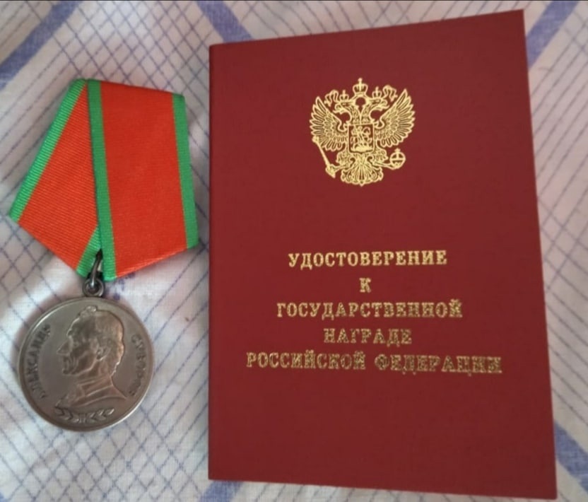 Указом президента Российской Федерации награжден медалью Александра Суворова.