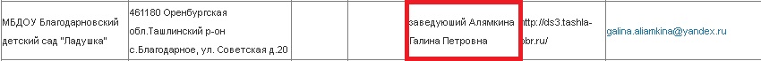 Кстати, с приставкой "экс": на сайте Управления образования Тоцкого района заведующей этим детским садом является уже не она.