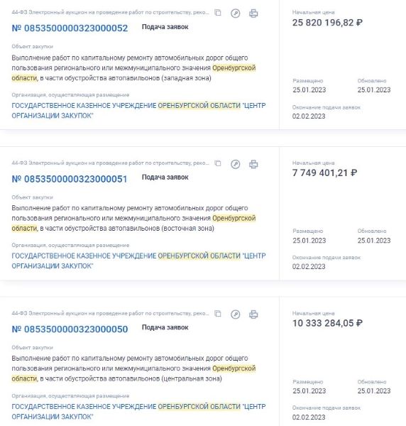 ГУ «Главное управление дорожного хозяйства Оренбургской области» разместило на сайте госзакупок сразу три лота на выполнение работ по капитальному ремонту автодорог общего пользования регионального и межмуниципального значения в регионе, а именно, обустройству на них автопавильонов. Точнее сказать, на трассах планируют отремонтировать за казенный счет остановочные павильоны: 15 остановок на западе области - на сумму в 25 820 196 рублей, семь остановок в центральной зоне - на сумму в 10 333 284 рубля и четыре остановки в восточной зоне - за 7 749 401 рубль.