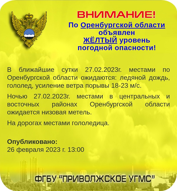 ФГБУ "Приволжское УГМС" объявило желтый уровень погодной опасности.