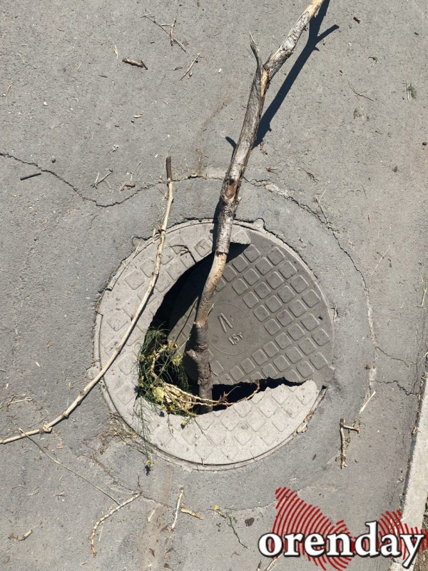 Благо заботливые горожане воткнули большую ветку, обозначив опасность на пути.