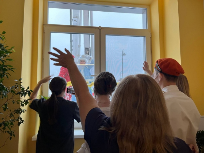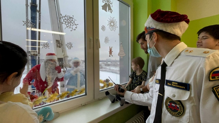 С высоты сказочные персонажи спустились прямо к окнам палат, превратив обычный больничный день в сказку.