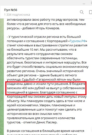 Разговоры о расселении жильцов из-за ветхости строения шли не один год. Еще в 2017 году дом признали аварийным, но расселение его обитателей планировали осуществить лишь в 2026 году. Теперь же власти решили ускориться. В планах регионального правительства - превратить колыбель летчиков, где учился первый космонавт Юрий Гагарин, в очередную в городе гостиницу с напылением истории в виде музейного комплекса. Такую идею подала Наталья Ибрагимова, министр архитектуры Оренбургской области.