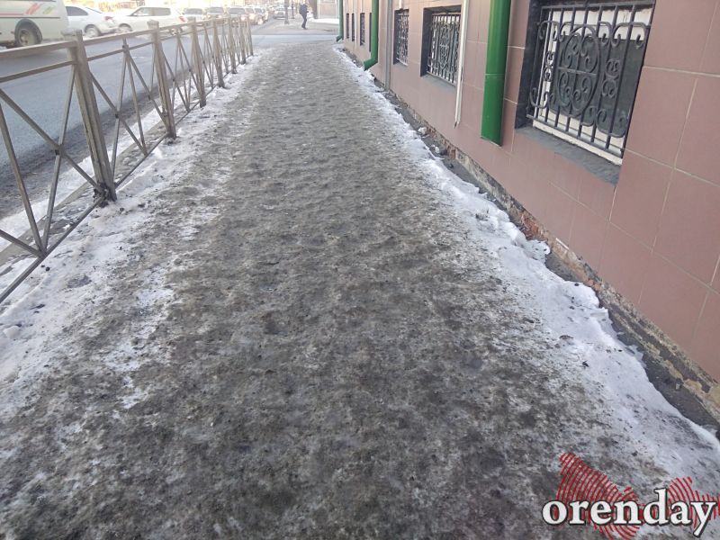 Прогуливаешься по улицам Оренбурга и чувствуется его крайняя неухоженность последнее время. Если завалы мусора на контейнерных площадках после новогодних праздников и последующих сильных морозов с горем пополам коммунальщики разгребли, то вот борьбу с гололедом на тротуарах оренбуржцы не особо заметили. Еще в новогодние каникулы сначала была оттепель и шел снег, потом ударили морозы, почистить пешеходные дорожки особо никто не успел, в результате чего они покрылись наледью, местами просто ледяными буграми, проблему которых не решили до сих пор.