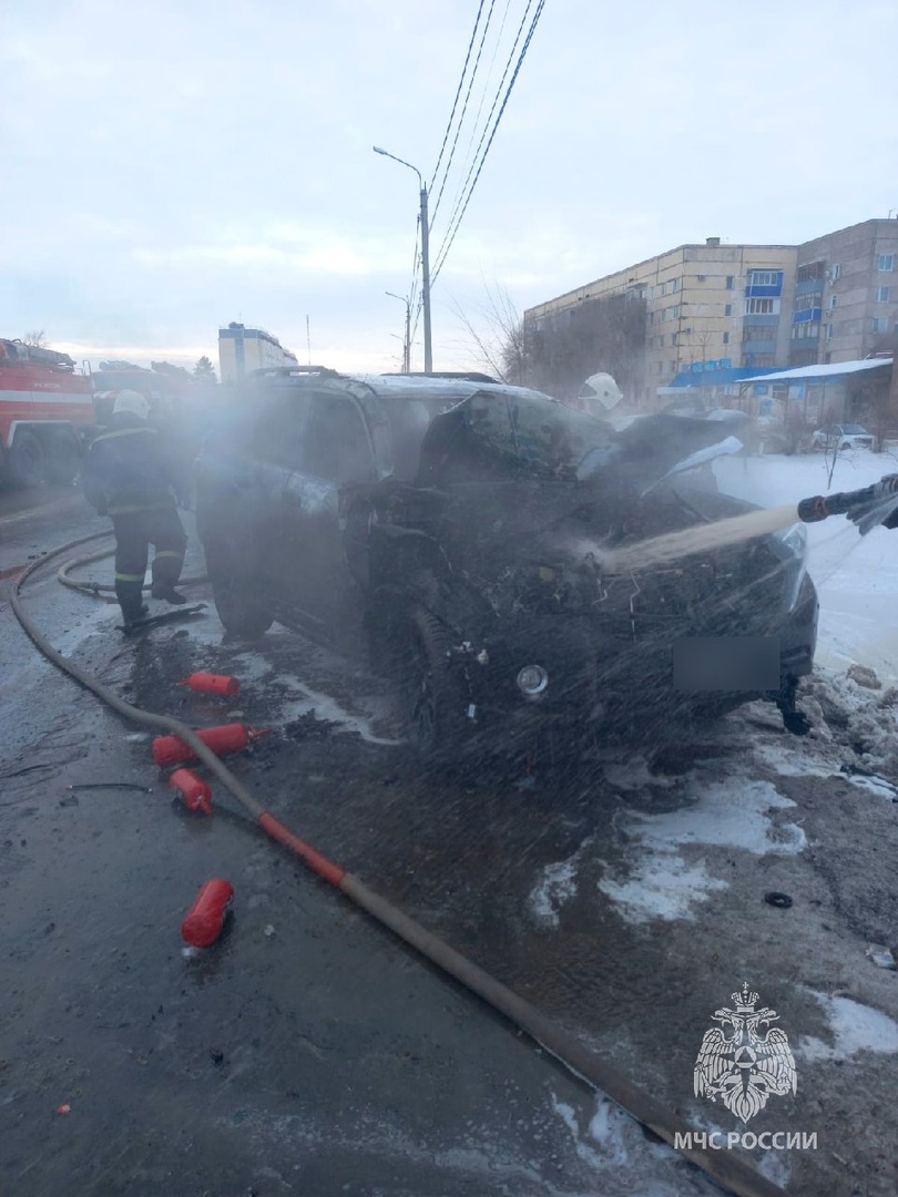 В Бузулукском районе прямо на дороге сгорел автомобиль Toyota Land Cruiser