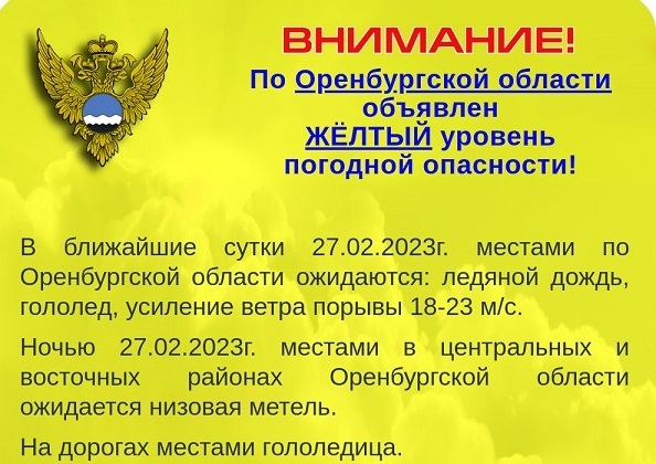 В Оренбургской области продолжает действовать желтый уровень опасности. Кроме штормового ветра на регион обрушится ледяной дождь. 26 февраля вечером ограничено движение транспорта. Подробно здесь.