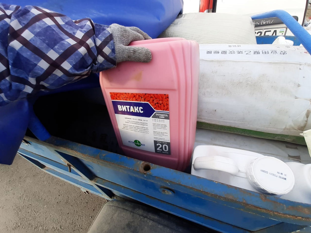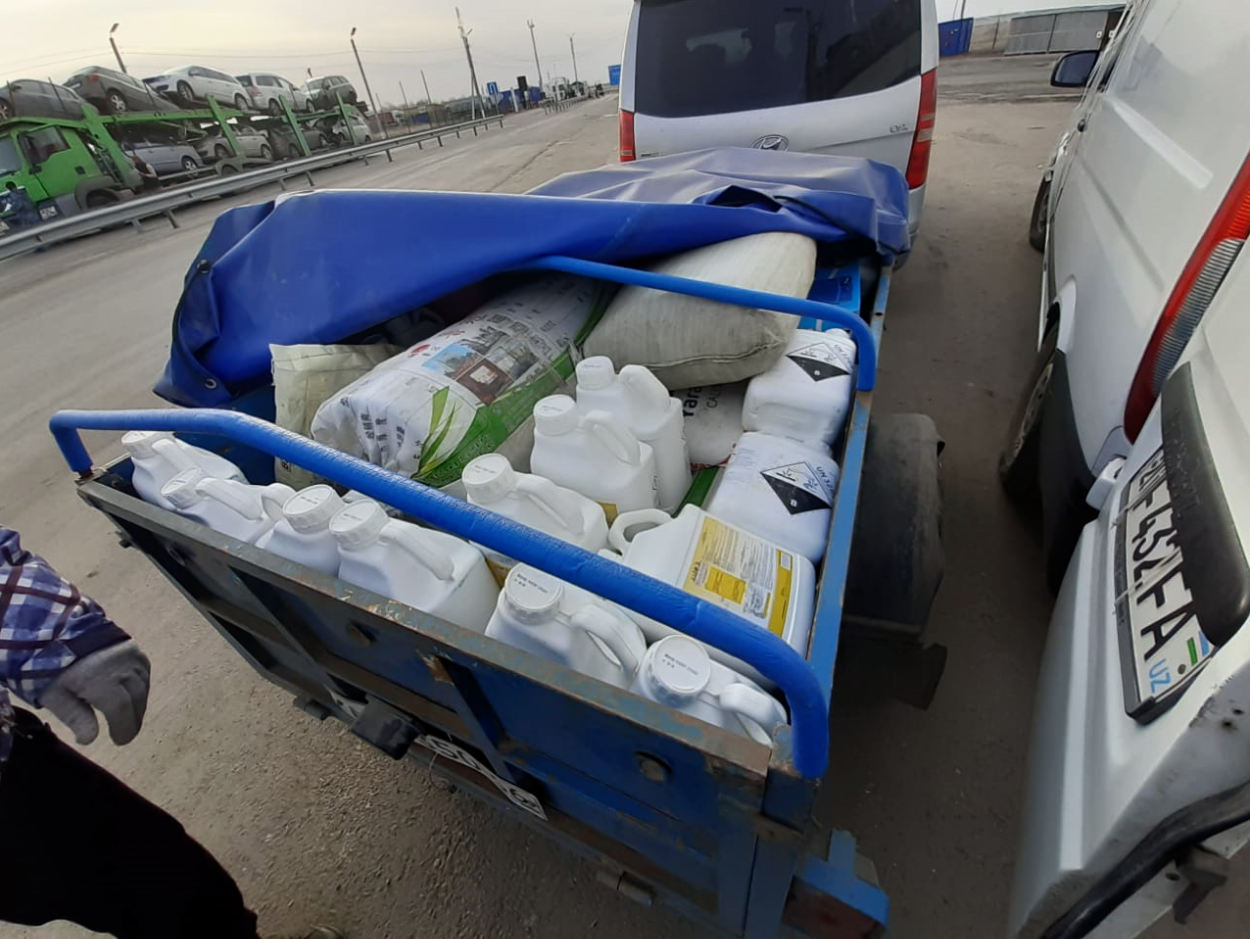 В ходе досмотра был установлен факт ввоза на территорию РФ из Казахстана пестицидов и агрохимикатов: корректор засоленных солонцовых и бесструктурных почв «Redusal», усилитель вегетативного роста на основе аминокислот и водорослей «Fyllotan», протравитель семян «Витакс» (общим количеством 120 литров) и 105 килограммов порошка фильвокислоты и удобрений «Calcinit», «Boilchim».