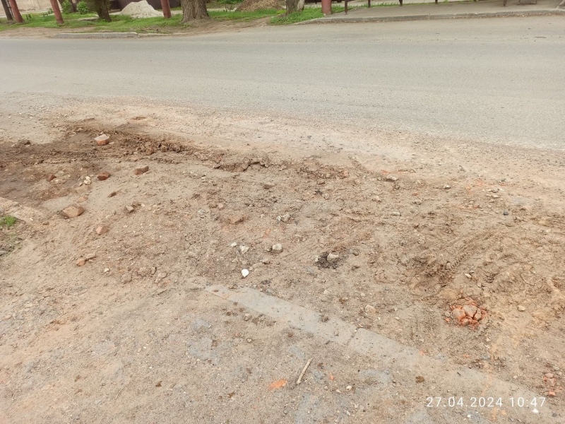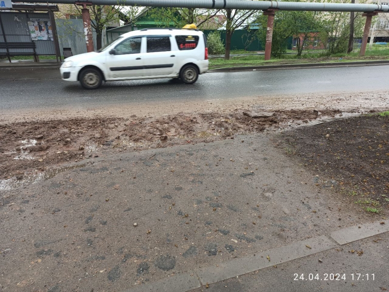 К слову, глина после дождя превратилась в твердый ком. Если пассажиры, ожидающие автобус на остановке, рисковали сначала испачкать обувь, то теперь есть вероятность упасть на ребристой поверхности и получить переломы.